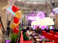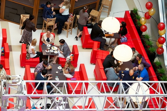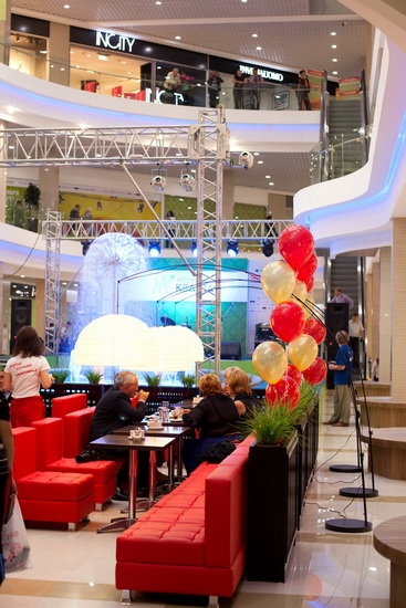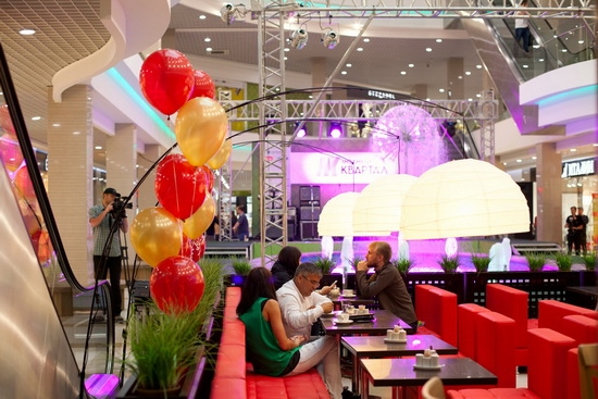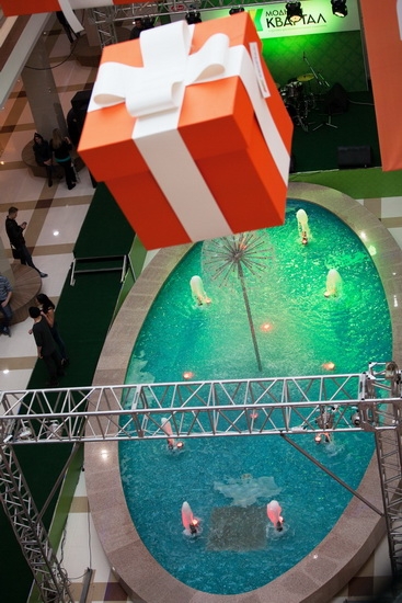 На каждом этаже Центра гостей ждало что-то интересное: музыкальные группы «Меланж» и «130 Квартал», лучшие танцевальные коллективы Иркутска, для детей выступал кукольный театр. А для самых модников и модниц на зеленой сцене у фонтана прошло fashion-show, где были представлены коллекции Mexx, Naf Naf, Zarina, Stefanel, Calvin Klein Jeans, Carlo Pazolini и других арендаторов «Модного квартала». Это было не просто дефиле красивых девушек и юношей в модной одежде, а целое танцевальное шоу, которое комментировал Денис Гук.